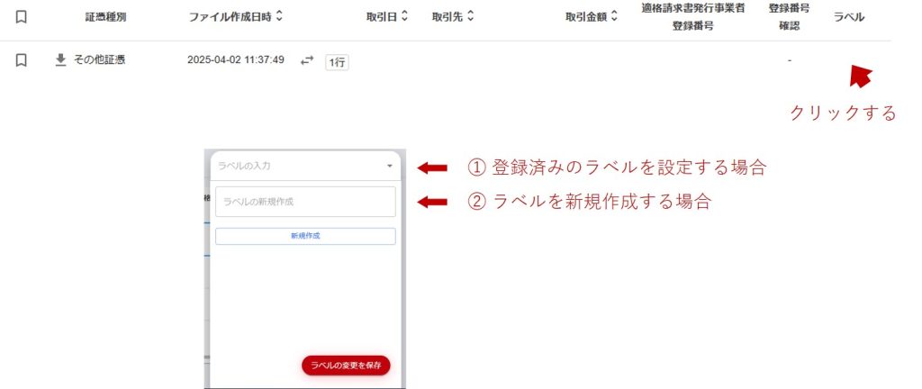 ラベル欄をクリックすると編集画面が表示されます。(何も表示されていなくてもクリックできます。)