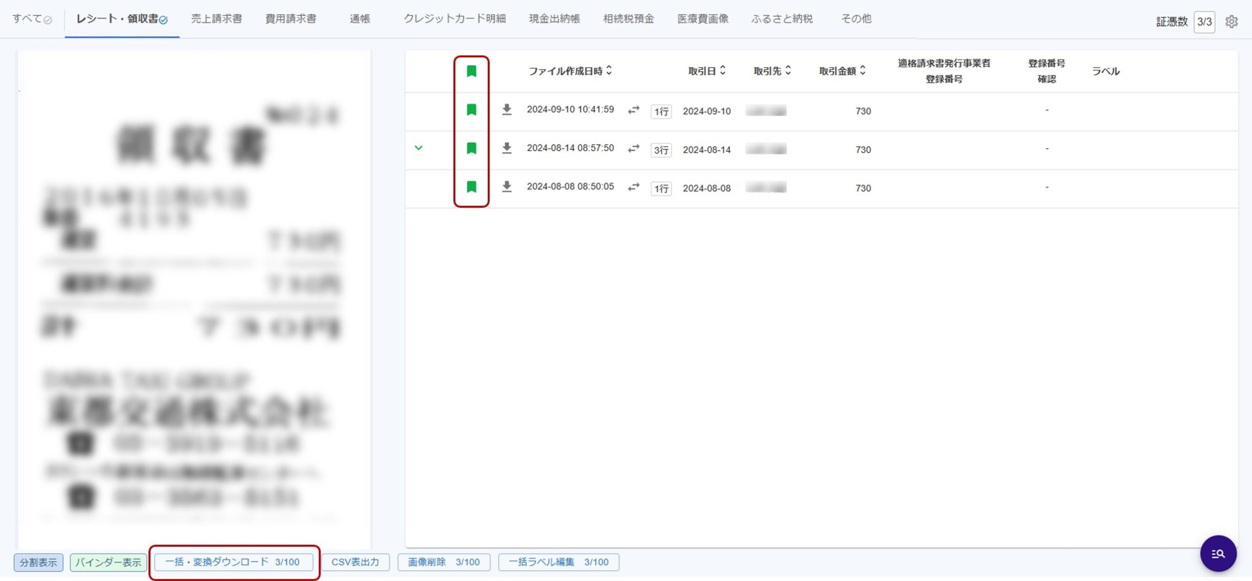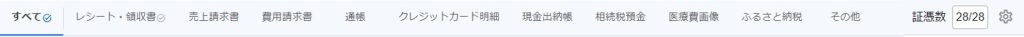 画面上部の証憑種別をクリックし、表示する証憑を切り替えます。