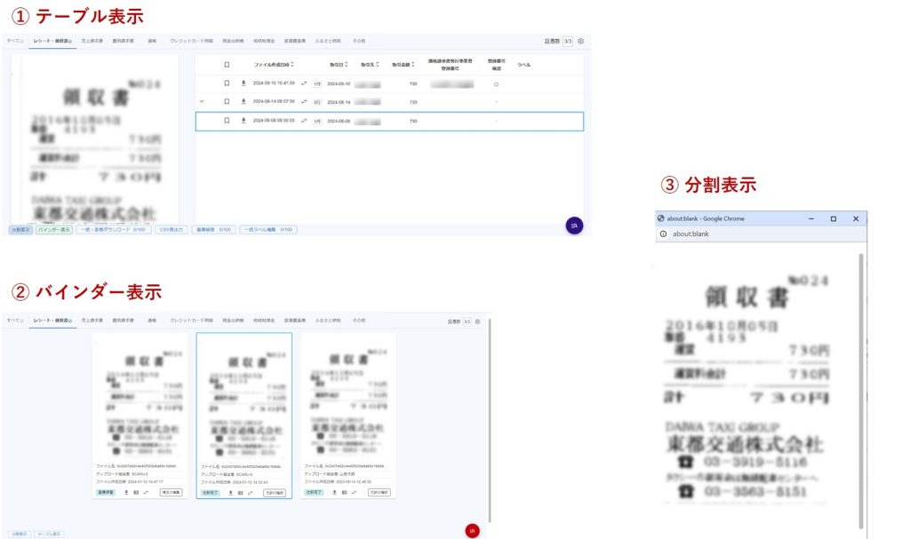 証憑画像を並べて表示します。