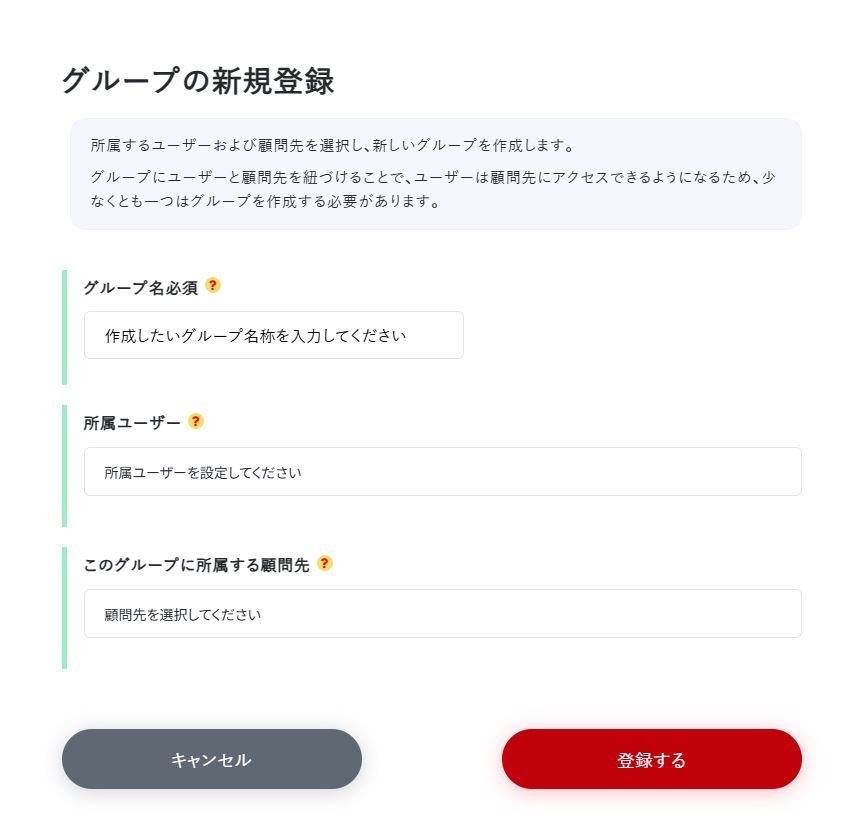 (SCARUではグループでユーザー・顧問先を管理しています。そのため最低1つのグループが必要です。)