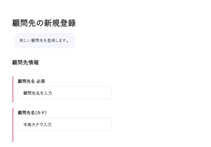 トップ画面の左にあるメニューバーの「顧問先登録・編集」をクリックし、顧問先を作成します。
